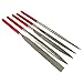 Diamond-coated files cut faster and leave a smoother finish than ordinary steel files. The diamond files from Hobby Tool Supply work on wood, plastic, ceramics, metal, glass and just about anything else. And, because the abrasive is made of genuine industrial diamonds brazed to nickel-plated steel handles, they last far longer than ordinary steel files. All files are diamond-coated on all sides. The handles are coated in red PVC for improved grip.