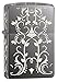 A Zippo lighter with a translucent powder coat, Black Ice, classic case, finished with a filigree pattern design. This lighter requires fluid fuel. The lighter is supplied un-fueled for safety during shipping.