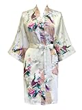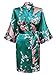 Swhiteme Women's Kimono Robe, Short, One Size, Peacock, Teal, KPS01B