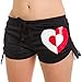 Officially licensed DC Comics Harley Quinn womens booty shorts featuring a mesh material with a heart on one front leg and Harley Quinn written across the back.