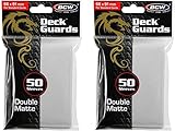 BCW Double Matte Deck Guards are firm enough to protect your cards' corners while the matte finish makes them shuffle-able and easy to handle. The clear matte front helps make your cards legible from across the table. Give your other sleeves the boot and tap into your unspent power in BCW's Double Matte Deck Guards.