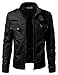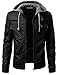 IDARBI Men¡¯s Premium Pu Faux Leather Moto Biker Jacket with Detachable Hood Black L