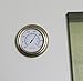 This decorative outdoor thermometer has an 8 inch diameter, with an easy to read dial that shows the temperature in both Celsius and Fahrenheit. Sturdy steel construction with a real glass lens and an antique brass finish. Attractive enough to hang indoors or outdoors.