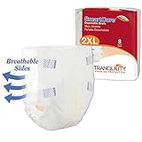 Tranquility SmartCore Disposable Briefs XXL-Plus White 60" - 80", 29 oz Fluid Capacity, Latex-Free. Provides the Peach Mat Guarantee for superior performance in skin dryness, odor reduction, neutralization of urine pH and inhibition of bacterial growth.