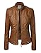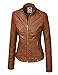 WJC747 Womens Dressy Vegan Leather Biker Jacket S Camel