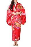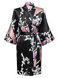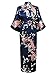 Swhiteme Women's Kimono Robe, Long, One Size, Peacock, Navy, KPL01B