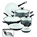 Freshen up easy, everyday meal-making and worry less about cleanup, with the brilliant cooking performance of the durable and dishwasher-safe Farberware pure Cook Ceramic Nonstick 12-Piece Cookware Set. The quality begins with innovative, PFOA-, PTFE- and cadmium-free ceramic nonstick that provides superb food release, in a fresh white color that gives even basic cooking a bright, bold look. Ever-dependable Farberware aluminum construction heats fast and evenly, as perfect for a quick skillet breakfast as a delicious slow-cooked chicken stew in the Dutch oven. Even better, the larger skillets feature a uniquely-textured quilted nonstick cooking surface to boost food release in the hard-working pans where that matters most. The sleek porcelain enamel exteriors are stain-resistant and easy to clean, and the cookware's sturdy handles sport distinctive stainless steel accents. Shatter-resistant glass lids hold in heat and moisture, while allowing busy home cooks to keep an eye on a one-dish chicken-and-rice dinner and a scrumptious chocolate sauce. The cookware set conveniently includes a set of sturdy Prestige nylon tools €“ a slotted turner, a slotted spoon, and a solid spoon, each ideal for use with the ceramic nonstick interiors. Oven safe to 350 DegreeF, this Farberware cookware set includes a Farberware Lifetime Limited Warranty. Get the cooking performance generations trusted and a bold, modern boost of style and nonstick cooking performance, with the durable, dishwasher-safe Farberware pure Cook Ceramic Nonstick 12-Piece Cookware Set.