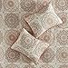 Tangiers instantly adds color and flair to your bedroom. Its bold Orange and taupe floral print with large medallions is a modern twist to a classic look. The embroidered detailing on the three decorative pillows pulls the whole look together. This coverlet set also includes two matching standard shams. With a microfiber polyester face and a brushed fabric reverse, this coverlet is soft to the touch and machine washable for easy care.