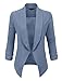LE3NO Womens Textured 3/4 Sleeve Open Blazer Jacket, L3NWJC1196- LIGHTBLUE, Large