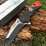 Snake Eye Tactical Spring Assisted Opening EMT EMS Orange Folding Pocket Knife