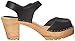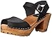 Modern swedish clog sandal with an eye-catching, peep-toe front, tractor sole and sleek wooden heel. features a leather upper with an adjustable strap for a snug fit.