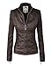 LL WJC877 Womens Panelled Faux Leather Moto Jacket L COFFEE