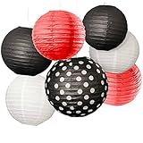 Tissue Paper Fan Collection - 5 Large Assorted Fans (Caribbean Red, White, Black, 18 and 13 inches)
