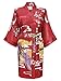 Swhiteme Women's Kimono Robe, Short, One Size, Geisha, Crimson