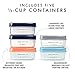 Fit & Fresh Cup Snack Set, Set of 5 Reusable Portion Control Containers, BPA-Free, Microwave/Dishwasher Safe, Multicolored Lids, 9.5" x 4.25" x 3.5", Green