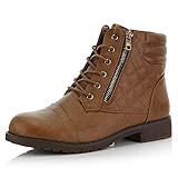 DailyShoes Women's Military Lace Up Buckle Combat Boots Ankle High Exclusive Credit Card Pocket, Tan Pu, 7