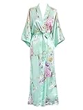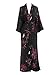Old Shanghai Women's Kimono Robe Long - Watercolor Floral, cherry blossom & crane- black