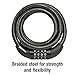The Master Lock no. 8370d set your own combination cable lock is 5 feet (1.5M) long and features 1/2 inch (12Mm) diameter braided steel cable for maximum strength and flexibility. The protective vinyl coating protects against scratches. The 4 dial combination security offers keyless convenience. The limited lifetime warranty provides peace of mind from a brand you can trust.