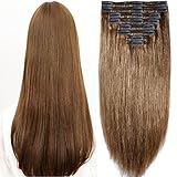 s-noilite 22" 55g 3/4 Full Head 1 Piece 5 Clips Clip in Remy Human Hair Extensions Silky Straight #6 Light Brown