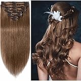 s-noilite 20" 50g 3/4 Full Head 1 Piece 5 Clips Clip in Remy Human Hair Extensions Silky Straight #6 Light Brown