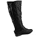 Spice up your cold weather look in these fashionable riding knee high boots. Featured round toe front, dual buckles decor on shaft, slightly slouchy shaft, and low heel. Finished with cushioned insole and smooth interior lining. Full side zipper closure for easy on/off.