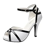 Getmorebeauty Women's Vintage White and Black Peep Toes Dress Shoes High heels Ladies Open Toe Party Pumps Two Tone Sandals 9 B(M) US