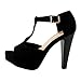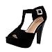 Top Moda Table-1 Women's peep toe platform chunky heel closed back buckle T-strap nubuck pumps Black 8.5