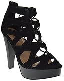 TOP Moda Table-1 Women's peep Toe Platform Chunky Heel Closed Back Buckle T-Strap Nubuck Pumps Black 5