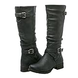 Forever Mango-21 Women's Winkle Back Shaft Side Zip Knee High Flat Riding Boots Brown 8.5