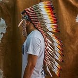This beautiful Indian Style Headdress is handmade and features stunning and 100% authentic feathers as well as stylish Native American Style beadwork in the front. The beads on the forehead can vary in color and design as we try to keep every headdress unique. It can be worn for various occasions. You can browse our full selection by clicking on our shop at the top under "Novum CraftsÓ. Our headdresses are designed and made by artisans in Bali, Indonesia and inspired by traditional Native American headdresses. They are not made by Native Americans and are not meant to be interpreted as authentic "Native American products".