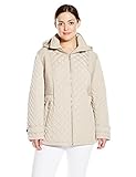 Calvin Klein Women's Plus-Size Quilted Jacket With Hood, Buff, 1X