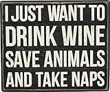 Primitives by Kathy 28663 Classic Box Sign, 8" x 6.5, Wine and Pet My Dog