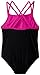 Speedo Big Girls Cross Back Splice 1 Piece, Black/Pink, 16