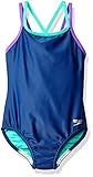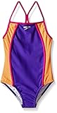 Speedo equals better fit, performance, quality, and innovation The Girl's 7-16 Crossback Splice One Piece is a popular athletic styled basic that is great for young swim team enthusiasts or for any water activity. The suit features trademarked Xtra Life Lycra which lasts 5 to 10 times longer than traditional lycra. So no bag and sag, and it looks like new for longer. With splice trim colorblock details, it also offers our new "No Wedgie Worries" technology, which adds a thin silicone gripper at the inner edge of the bottom to keep the suit in place during activities. Look and feel your best in or out of the water, while you play, train or win in speedo, the choice of champions