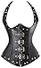 KIWI RATA Women's Punk Rock Faux Leather Buckle-up Corset Bustier Basque with G-String, Punk Black Strap, Medium