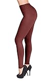 SATINA Fleece Lined Leggings High Waist Compression Slimming Warm Opaque Tights (One Size, Brown)