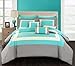 Chic Home Duke 10 Piece Comforter Set Complete Bed in a Bag Pieced Color Block Patterned Bedding with Sheet Set and Decorative Pillows Shams Included, King Turquoise