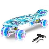 Kqpoinw Skateboards, 22" Complete Skateboard for Kids Ages 6-12, Mini Cruiser Skateboard for Kids Boys Girls Teens Beginners with Colorful LED Light up Flashing Wheels Skate Tool