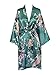 Old Shanghai Women's Kimono Short Robe - Peacock & Blossoms - Jade (on-seam pocket)