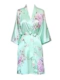 Give yourself a luxurious night in or a colorful night out with this satin kimono robe - which functions as a lounge robe, bathrobe, or long kimono cardigan in warmer weather. With the beautifully detailed print of flower blossoms and peacocks, a symbol for integrity, this easy-care fabric kimono is your go-to staple for every special occasion. *For more information, please contact us before purchase.