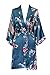 Old Shanghai Women's Kimono Short Robe - Peacock & Blossoms - Lapis Blue (on-seam pocket)