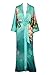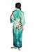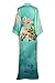 Old Shanghai Women's Kimono Robe Long - Watercolor Floral, Coral Chrysanthemum- Meadow Blue, One Size.