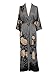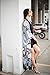 Old Shanghai Women's Kimono Robe Long - Watercolor Floral, blush rose-gunmetal