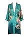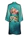 Old Shanghai Women's Kimono Robe Short - Watercolor Floral, Coral Chrysanthemum- Meadow Blue,One Size.