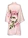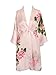 Old Shanghai Women's Kimono Robe Short - Watercolor Floral, Peony & Bird - Pink