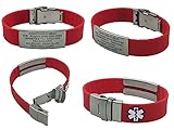 Sport/Slim Reversible Waterproof Medical Alert Bracelet. Incl. 9 Lines Engraving. - Black/RED