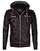 IDARBI Men's Premium Pu Faux Leather Moto Biker Jacket with Detachable Hood Brown M