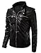 IDARBI Men's Premium Pu Leather Motorcycle Bomber Jacket with Detachable Hood BLACK M