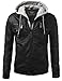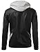 IDARBI Men's Premium Leather Motorcycle Bomber Jacket with Detachable Hood Black Medium