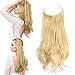 Blonde Hair Extension Halo Hairpiece Long 18" Secret Natural Wavy Synthetic Hair Pieces For Women Flip in Hidden Wire Crown Headband Japan Heat Temperature Fiber No Clip in (M01#27/613)